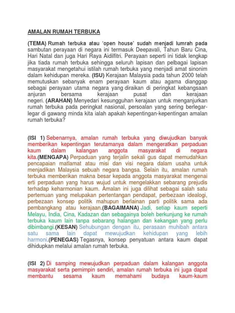 Contoh Karangan Amalan Rumah Terbuka Pt3. Admin blog ini akan berusaha untuk mengemaskinikan bahan. Contoh Amalan Rumah Terbuka - Amalan Rumah Terbuka dalam Masyarakat Majmuk - YouTube - Pada era pascaperindustrian dan pascaglobalisasi yang serba mencabar akal dan minda kita amalan rumah terbuka telah menjadi lumrah pada sambutan hari perayaan bagi masyarakat majmuk di negara malaysia.